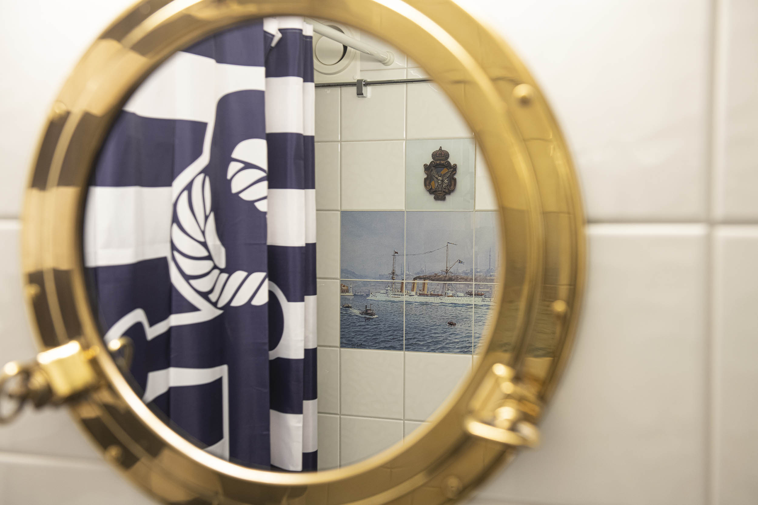 Konsten i rummen är genomgående i marin stil med fartyg och båtar i olika miljöer.